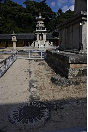 | ▲ 석가탑 주변은 8개의 연꽃조각이 둘러싸고 석가모니의 암좌를 상징하는 자연석 바위가 기단돌과 맞물리는 그렝이기법으로 건축되어 있다. 석가탑에서 눈여겨봐야 할 부분이고 상징이다. ⓒ 이순희 |