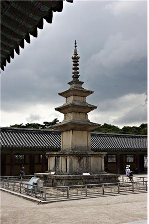 | ▲ 불국사 석가탑에 와서 탑신과 지붕돌이 각각 하나의 통돌을 써서 건축되었다. 엄정하게 솟은 수직의 탑을 세우는데는 탑신의 비율 등에 착시를 이용한 기하학적 계산법이 활용됐다. ⓒ 이순희 |