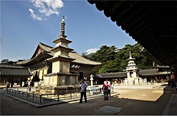 | ▲ 사진 불국사 청운교 백운교가 상징하는 33천을 올라온 곳에 나란히 자리해 설법하는 석가모니와 그의 설법을 듣는 다보여래의 상징 석가탑과 다보탑. ⓒ 이순희 |