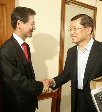 반면 문 사장 쪽은 일단 신당 참여에는 부정적이다. 문 사장을 지지하는 미래경제사회포럼의 신봉호 이사는 "현재로서는 민주신당에 참여할 생각은 없다"며 "일차적인 목표는 미래세력을 결집하는 것"이라고 말했다.