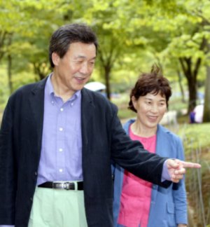 ▲ 자택에 칩거하던 손학규 후보가 20일 경기 화성 남양성모성지에서 부인 이윤영 여사와 숲속을 거닐고 있다. ⓒ뉴시스