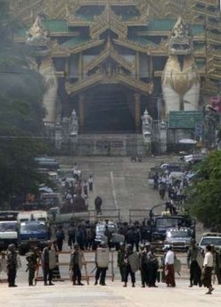 승려와 시민 수백여명은 이날 오후부터 양곤의 상징적인 불탑(佛塔)인 쉐다곤 파고다 주변으로 몰려들었으며 무장한 군 병력은 이곳으로 통하는 길목 4곳에 철조망을 두르고 시위대의 접근을 막았다.