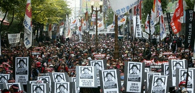 이날 집회에는 권영길 민주노동당 대선 후보도 참석해 영세민의 생존권 보장을 요구했으며 숨진 이씨의 부인(45)은 연단에서 '남편에게 보내는 글'을 읽다 실신하기도 했다.