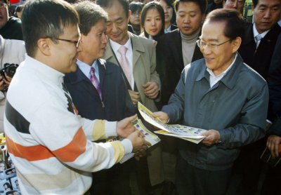 그는 또 "여당은 여러 번 이름을 바꿔 어디다 욕을 해야할지도 모르겠다"고 비판하면서 "한나라당은 10년 동안 정권을 두 번 뺏기고도 당을 지켜왔다"며 한나라당의 정통 후보라는 점을 내세운다. 다분히 이회창 후보를 겨냥한 발언이다.