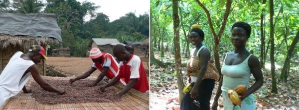 지난해 5월 아프리카 가나의 공정무역 카카오 생산지를 방문했다. 가나는 국가 수입의 40%를 카카오 수출로 메꾸고 있는 나라로 전 국민이 카카오에 매달려 있다고 봐도 과언이 아니다. 우리는 '쿠아파쿠쿠'라는 카카오 생산자 조합을 방문했는데 아주 모범적인 조합이다. 이 조합은 영국의 공정무역 초콜릿 회사 '디바인' 주식의 46%를 차지하고 있는 대주주다. 생산자가 바로 경영자인 셈이다. 이 곳 농부들의 수입이 올라 아동 노동도 없어지고 학교 건물도 지어지는 등 생산 수준이 향상되자 각지에서 조합에 가입하려는 사람들이 점점 늘어나고 있다.