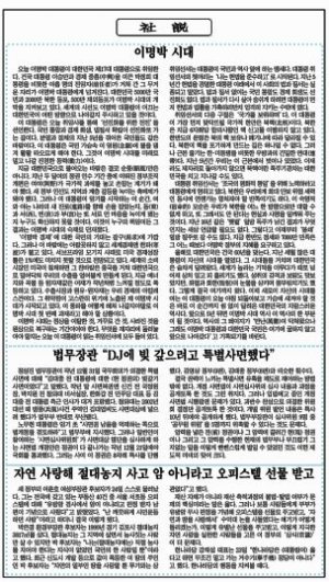 이날 신문 가운데 이명박 정부를 정면 비판한 것은 단연 <경향신문>이다.