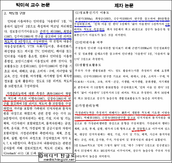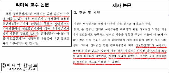 블로그 '미디어 한글로(http://media.hangulo.net)를 운영하는 누리꾼 '한글로'는 자신의 블로그에 25일 "표절논란 논문, 직접 비교해보니…'라는 제목의 글을 올렸다. (☞ 원문보기)