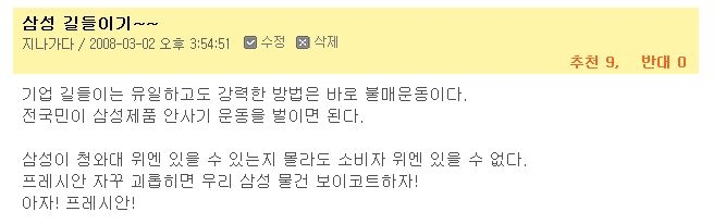 "삼성제품 어느것도 사지 않겠습니다"