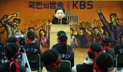 KBS 노조는 이날 서울 여의도 KBS 본관 앞 민주광장에서 '방송구조 개편 대응 등 공영방송 사수를 위한 비상대책위원회' 출범식을 개최하고 정 사장 퇴진을 위한 비대위 출범을 알렸다.