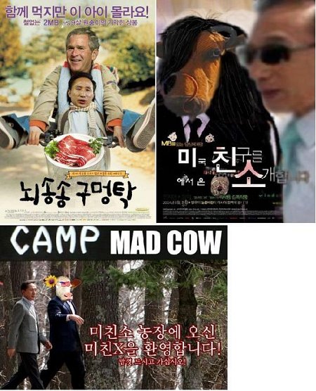 다른 누리꾼(멍키렌치)은 "한 쌍의 아름다운 미친소입니다. 지금 미친소가 당신을 만나러 갑니다" 등의 멘트와 함께 이명박 대통령과 조지 부시 대통령의 한미정상회담 장면에 소의 얼굴을 합성한 사진을 올리기도 했다.