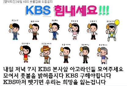 미국산 쇠고기 수입 반대로 촉발된 촛불시위가 이명박 정부 정책에 대한 총체적 평가로 이어지긴 했지만 이명박 정부의 KBS 장악 반대로 불붙을지는 언론 관련 시민단체 관계자도 예상하지 못했던 일.
