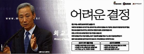 이날 이 광고는 이른바 '조·중·동' 가운데 <중앙일보>에만 게재되지 않아 의구심을 낳았으나 중앙일보 광고기획국 관계자는 "내일 (27일)이나 모레 걸릴 예정"이라며 "정부가 고시게재 광고를 보다 많이 알리려고 신문매체를 이원화 한 것 같다"고 말했다.
