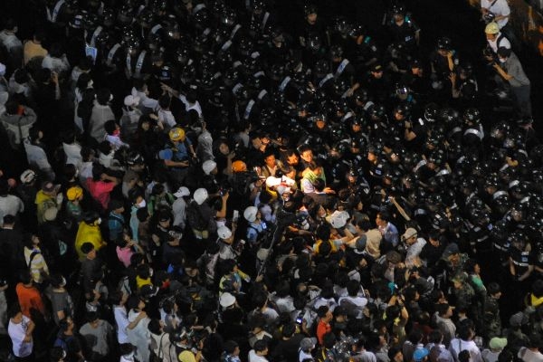 또 경찰은 동아일보 사옥 앞에 대어져 있던 버스 두 대를 광화문을 막기 위해 이동시켜 시민과 전경들의 충돌을 야기했다. 조선일보사 앞에서도 방패로 땅을 찍어 공포감을 유발시키지 말라며 항의하던 시민과 전경이 몸싸움을 벌여 한 시민이 연행된 것으로 알려졌다. 경찰 쪽에서는 살수차는 대기하지 않고 있다.
