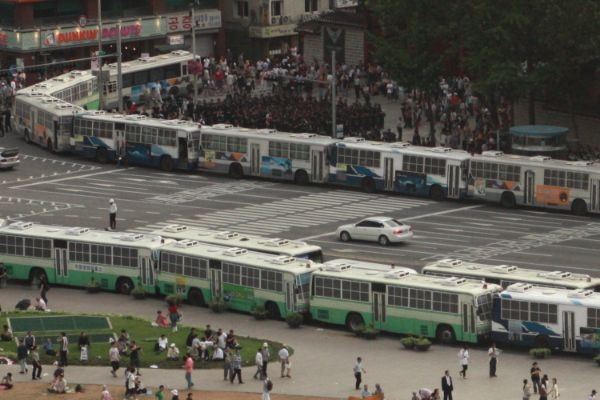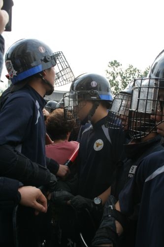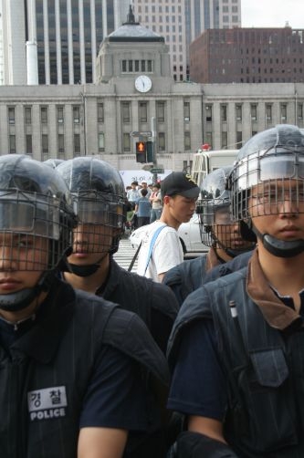이명박 정부가 최루액 살포 등 강경 대응 방침을 밝힌 29일 경찰은 오후 5시부터 서울 시청앞 광장을 경찰버스와 전경 등으로 둘러싸고 시민들의 접근을 원천 차단했다. 경찰은 청계광장을 포함해 광화문 사거리부터 시청 광장에 이르는 구간 전체도 경찰 버스로 감싸 시민들의 도로접근을 아예 차단했다.