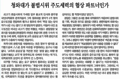 정부에 "불법세력과 대화는 안된다"는 <동아>