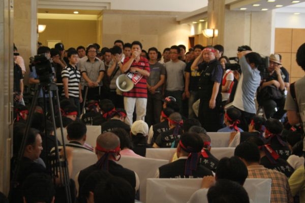 이사회가 기습, 불법적으로 장소를 변경함에 따라 이날 정오부터 KBS 본관에서 "이사회 해체"를 요구하며 농성을 벌이고 있던 전국언론노조 KBS 지부 조합원 200여 명도 이사들이 모여있는 가든 호텔로 옮겨와 이사회 해체 농성을 벌였다.