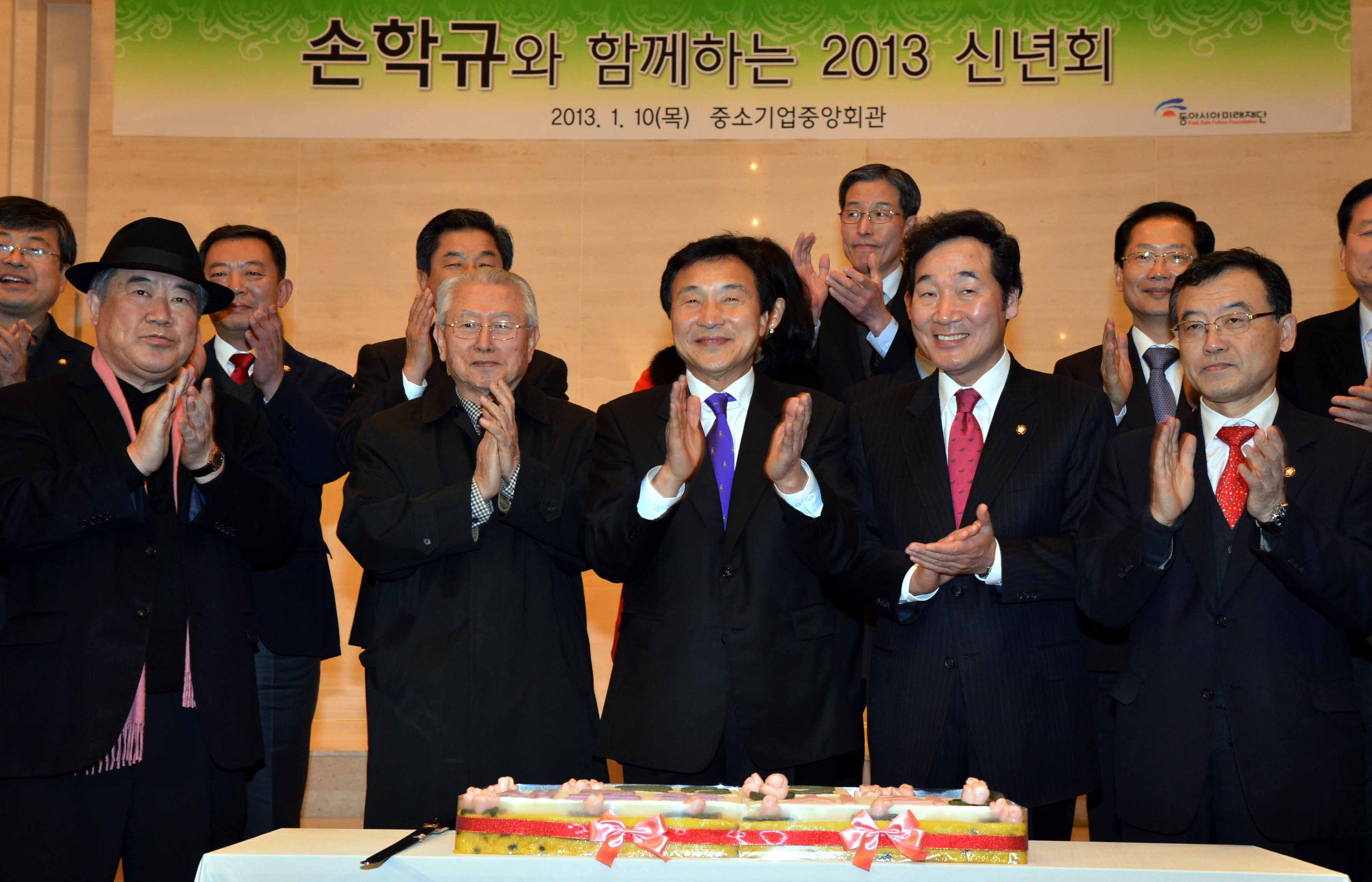 | ▲ 10일 오후 서울 여의도 중소기업중앙회회관에서 열린 손학규와 함께하는 2013신년회에서 손학규 민주통합당 상임고문과 내빈들이 새로운 시작 떡을 절단후 박수를 치고 있다.ⓒ뉴시스 |