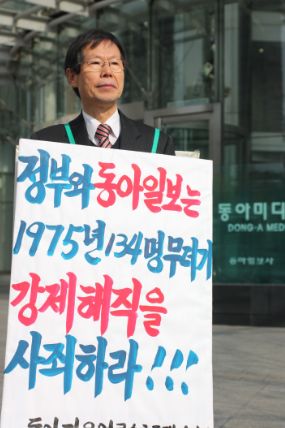 정동익 위원장은 "1인 시위를 벌인 지 3주가 지나도록 동아일보와 이명박 정부는 모르쇠로 일관하고 있다"며 "이명박 정부가 과거 정권에서 일어난 일이라 모르겠다는 식으로 생각한다면 큰 오산이다. 동아일보의 김재호 사장 역시 마찬가지"라고 비판했다.