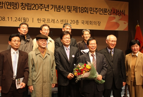 이날 민주언론상 본상은 130여 일간 '낙하산 사장' 저지 투쟁을 벌인 언론노조 YTN 지부(위원장 노종면)이 수상했고 보도부문 특별상은 '광우병' 관련 프로그램으로 촛불시위의 기폭제가된 <PD수첩> 제작진이 받았다. 또 활동부문 특별상은 얼마전 진실과 화해를 위한 과거사정리위원회가 진상 보고서를 낸 동아자유언론수호 투쟁위원회(동아투위) 회원들에게 돌아갔다.