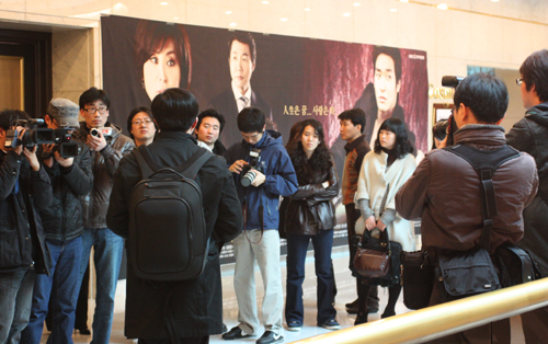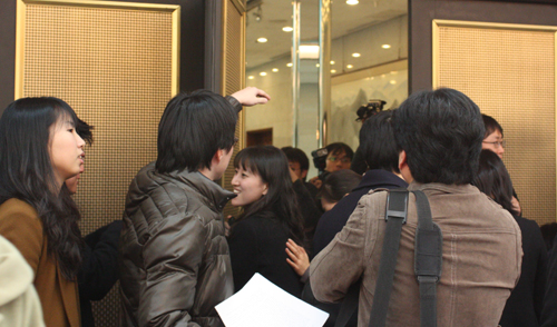 | ▲ 기자들의 퇴장 직전 행사 담당자가 찾아와 집단 퇴장에 항의했다. 기자들은 의도치 않게 제작국과 연기자 등에게 불편을 끼친 데 사과했으나 집단 퇴장을 강행했다. ⓒ프레시안 |