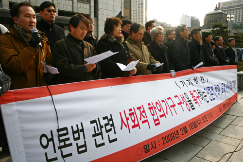 이들은 "2월 임시국회에서 한나라당이 다시 추진하는 언론 관련법에 대해 국민 69.2%(1월23일 SBS-TNS조사)가 반대하고 있다"고 지적하고 "한나라당 내부에서조차 충분히 논의되지 않은 상황에서 언론 관련법이 국회에서 통과되는 것은 있을 수도 없는 일이며 만에 하나 통과된다면 사회 갈등을 더욱 증폭시켜 정권을 위협하는 저항을 불러 올 것"이라과 경고했다.