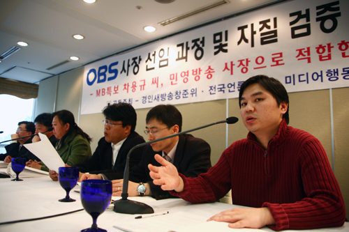 경인지역 새방송 창사준비위원회와 전국언론노동조합, 미디어행동, OBS 조합은 5일 서울 태평로 프레스센터 외신기자클럽에서 'OBS 사장 선임 과정 및 자질 검증 토론회'를 개최했다. 이들은 이날 토론회에 차용규 사장도 참석할 것을 요구했으나 차 사장이 거부했다고 밝혔다.