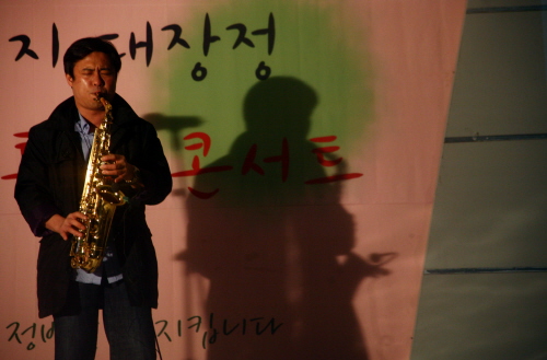 ▲ 조형주 언론노조 방송통신융합대책특위위원장이 이날 색소폰을 연주해 많은 박수를 받았다. ⓒ언론노보