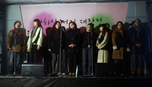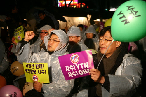 이날 문화제에는 YTN 지부 외에도 역시 낙하산 사장에 맞서 싸우는 조합원들이 참석해 눈길을 끌었다. 이명박 대통령의 대선 특보 출신인 차용규 사장 퇴진 운동을 벌이고 있는 언론노조 OBS지부(지부장 노중일)와 사측의 부당해고에 맞서싸우는 공공노조 국립오페라합창단지부(지부장 조남은)이 그들.