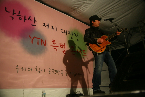 ▲ 낙하산 저지 대장정 YTN 특별 콘서트에서 노래를 부르고 있는 안치환씨. ⓒ언론노보