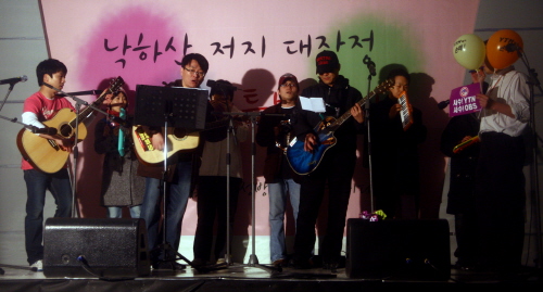 겨울 가뭄 끝에 내리는 '고마운 봄비'라고들 했지만 6일 'YTN 낙하산 반대 대장정 콘서트'를 준비해온 전국언론노조 YTN 지부 조합원과 시민에게는 안타까운 비였다. 그러나 이날 "YTN 낙하산 구본홍 저지의 불씨를 되살리겠다"며 서울 남대문 YTN 사옥 옆 공터에서 열린 문화제는 YTN 특유의 활기가 넘쳤다.