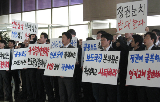 이들은 "만약 경영진이 작위, 또는 부작위로 기자들의 결단을 존중하지 않고 정권의 부당한 압력에 굴복하거나 공정보도를 훼손할 경우 우리는 언제든 전면적인 행동에 들어갈 것임을 분명히 경고한다"고 밝혔다.