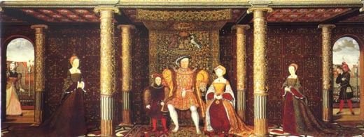 | ▲ 헨리 8세의 가족 그림. 헨리의 옆에 있는 왕비는 이미 죽은 제인 시모어였다. |