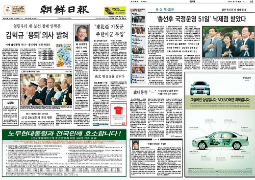 당시 <조선일보>는 "열린우리당 왜 참패했나" 등의 기사에서 "열린우리당의 패배는 곧 수석 당원인노무현 대통령의 정치적인 패배"이며 "국민은 지난 51일간 노 대통령과 열린우리당이 이끈 국정을 낙제점이라고 심판했다"고 분석했다.
