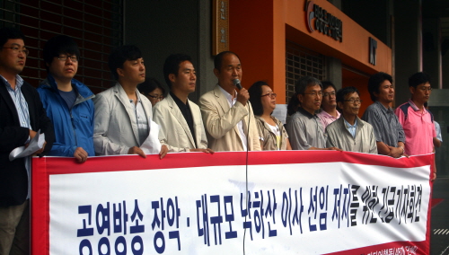 48개 언론시민사회단체로 구성된 '미디어행동'은 9일 서울 태평로 방통위 사옥 앞에서 '공영방송 장악 대규모 낙하산 이사 선임 저지를 위한 긴급 기자회견'을 열고 "이병기, 이경자 방송통신위원은 방송통신위원으로서의 역할을 사실상 포기하고 있다"면서 "두 위원은 사즉생의 각오로 용퇴의 길을 선택하라"고 촉구했다.