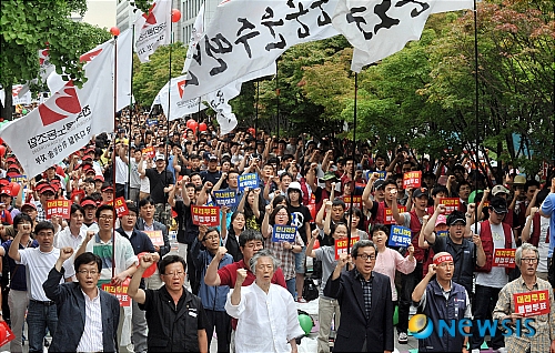 | ▲ 24일 서울 여의도 국회의사당 앞에서 열린 '3차 투쟁 승리 · 언론악법 완전 폐기 결의 대회'. ⓒ뉴시스 |