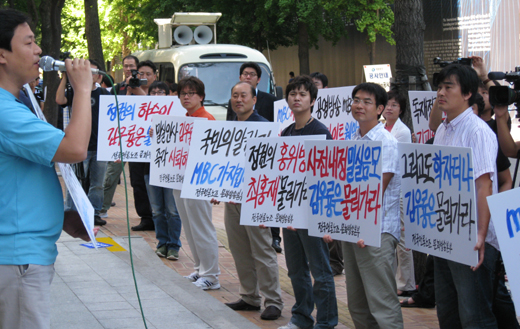 MBC 노조 "김우룡, 최홍재는 물러가라" 몸싸움 벌여