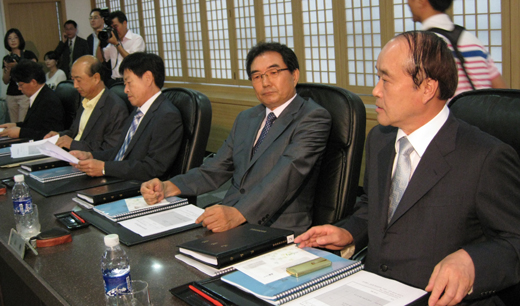 ▲ 김우룡 이사장(오른쪽) 등 방송문화진흥회 이사들이 10일 첫 임시이사회를 열었다. ⓒ프레시안