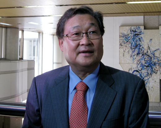 | ▲ 정연주 전 KBS 사장이 배임 혐의 무죄 선고를 받은 직후 기자들과 이야기를 나누고 있다. ⓒ프레시안 |