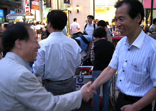| ▲ 서울 명동에서 언론악법 원천무효 서명운동을 벌이고 있는 정연주 전 KBS 사장과 한명숙 전 총리. ⓒ프레시안 |