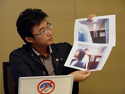 노 위원장은 "경찰 조사를 받을 때 동영상을 '캡처'한 형식의 출처 불명의 사진들을 제시 받은 적이 있다"면서 "이 때문에 당시에도 사측이 몰래카메라를 사용하고 있는 것 아니냐는 의혹이 제기됐다. '몰카'를 이용한 채증이 상당히 오랜 기간 동안 광범위하게 이뤄졌던 것이 아닐까 하는 의심이 들게 한다"고 말했다.
