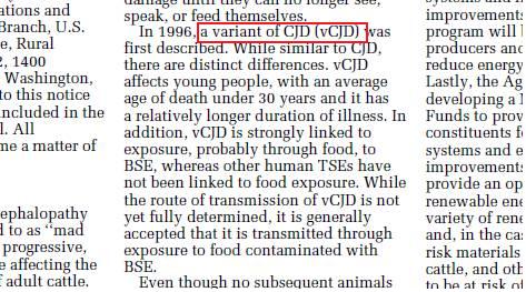 | ▲ 2004년 5월 18일자 <연방관보> ,중 일부. 'a variant of CJD (vCJD)'라고 쓰고 있음을 볼 수 있다. |