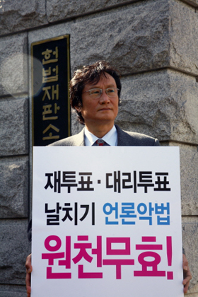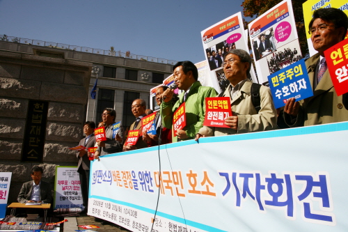 헌법재판소의 무효 결정으로 언론악법이 완전히 폐기될 수 있도록, 우리는 마지막 옥쇄투쟁으로 국민 여러분과 함께 할 것이다.