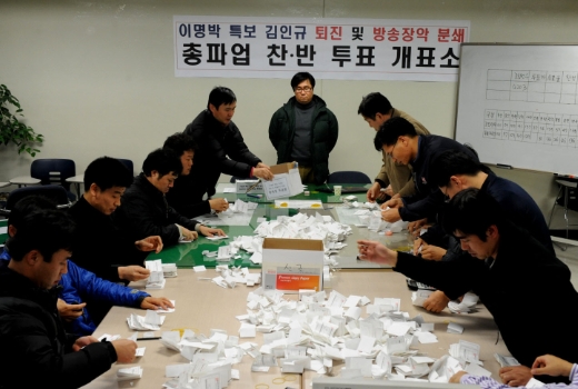 | ▲ 2일 KBS 노동조합이 '이명박 특보 김인규 퇴진 및 방송장악 분쇄 총파업 찬반 투표' 결과를 개표하고 있다. ⓒKBS노동조합 |