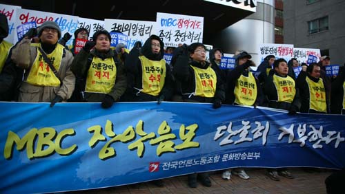 조혁신 언론노조 인천일보 지부장은 "지난 여름에는 이명박 정부가 방송과 언론을 장악하려고 우리를 열받게 했고 겨울에는 몸서리가 치도록 하고 있다"면서 "이명박 정부는 방송 장악을 위해 자신의 애완견을 곳곳에 심어두고 있다. 이들을 막지 못하면 이 애완견은 맹수가 되어 우리를 물어뜯을 것이다. MBC 본부 여러분 힘내자"라고 격려했다.