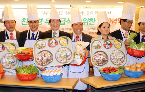 이들은 "초등학교, 중학교 9년간 학생 1인당 450만 원인 급식비 부담을 해결하겠다"면서 "시도별 여건에 맞게 고등학교, 어린이집, 유치원에서도 무상 급식을 단계적으로 확대하겠다"고 밝혔다. 이들은 "5월 이전에 지역마다의 여건을 반영해 친환경 무상 급식을 위한 시도별 이행 계획을 밝히겠다"고 선언했다.