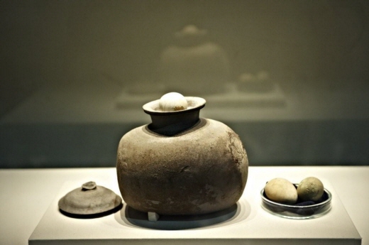 | ▲ 경주박물관에서 본 천마총출토 달걀들. 회색 토기에 담긴 1500년전 달걀은 박혁거세 석탈해 김알지 같은 신라인을 상기시켰다. ⓒ 이순희 |