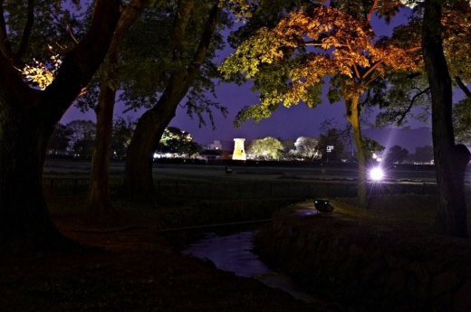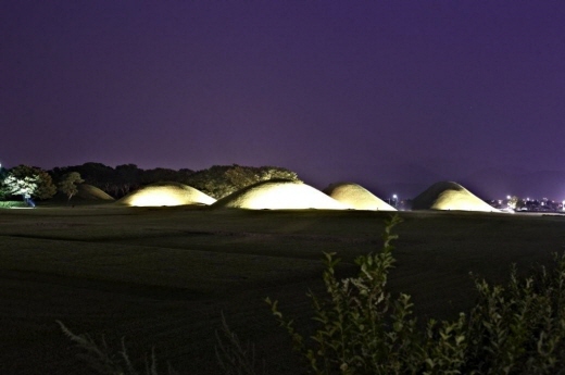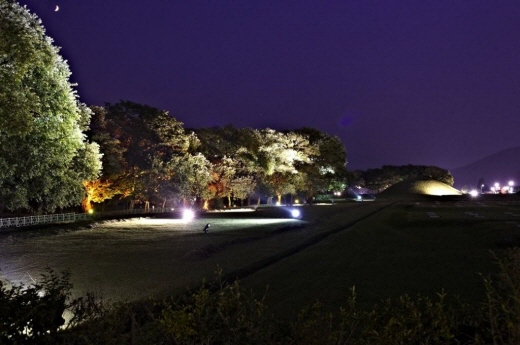 | ▲ 밤에 보는 내물왕능과 고분 뒤편의 계림숲 ⓒ이순희 |