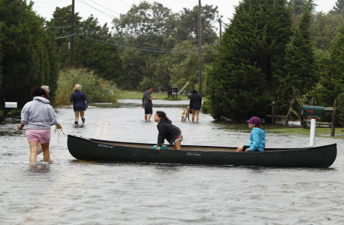 | ▲ 열대성 폭풍 아이린으로 인해 홍수가 발생하면서 미국 뉴욕주 사우스햄프턴 주민들 일부는 카누를 사용해 거리로 나섰다. ⓒ로이터=뉴시스 |