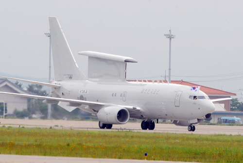 | ▲ 지난 1일 경남 김해의 공군 5전술공수비행단에 착륙하고 있는 공중조기경보통제기(AEW&C) 1호기 '피스아이'(Peace-Eye) ⓒ뉴시스 |