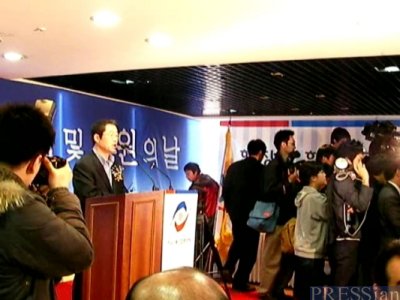 이날 대회를 지켜보는 언론의 관심도 대선주자들에게 쏠려 있었다. 이용득 위원장이 대회사를 하는 중에도 각 언론사 취재진들의 눈과 귀는 대선주자들이 앉아있는 테이블 주변에만 쏠려 있었다.